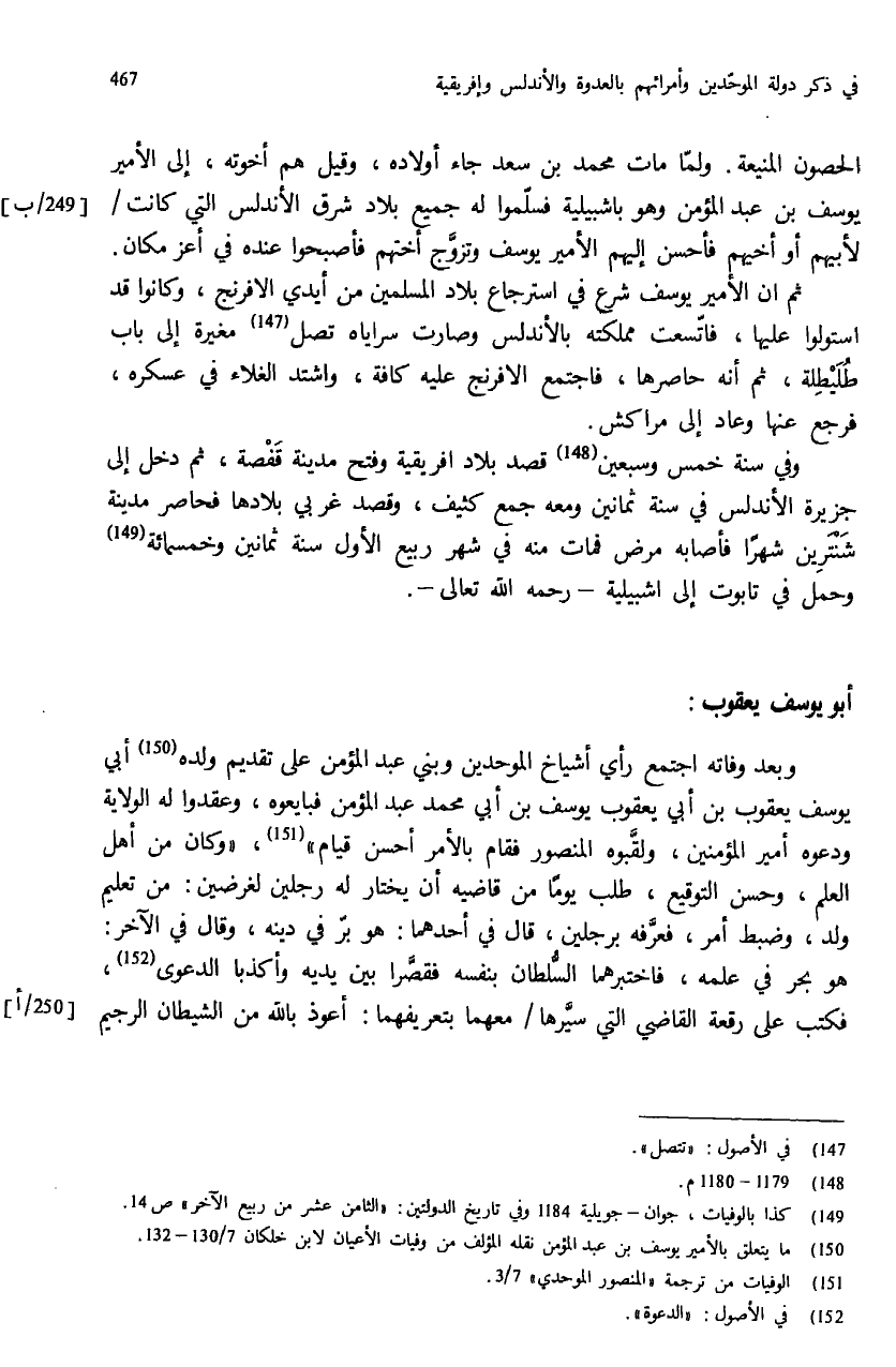 (¬150) ما يتعلق بالأمير يوسف بن عبد المؤمن نقله المؤلف من وفيات الأعيان لابن خلكان 7/ 130 - 132.
