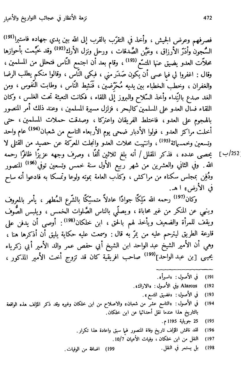 (¬196) لقد ناقش المؤلف تاريخ وفاة المنصور فيما سبق واعادة هذا تكرار.