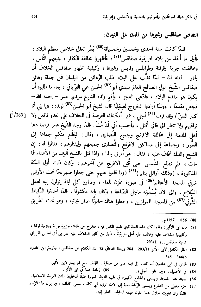 (¬82) انظر الكامل لابن الأثير 11/ 203 - 204 ورحلة التجاني 75 عند الكلام عن صفاقس، وتاريخ ابن خلدون 6/ 344 - 345.