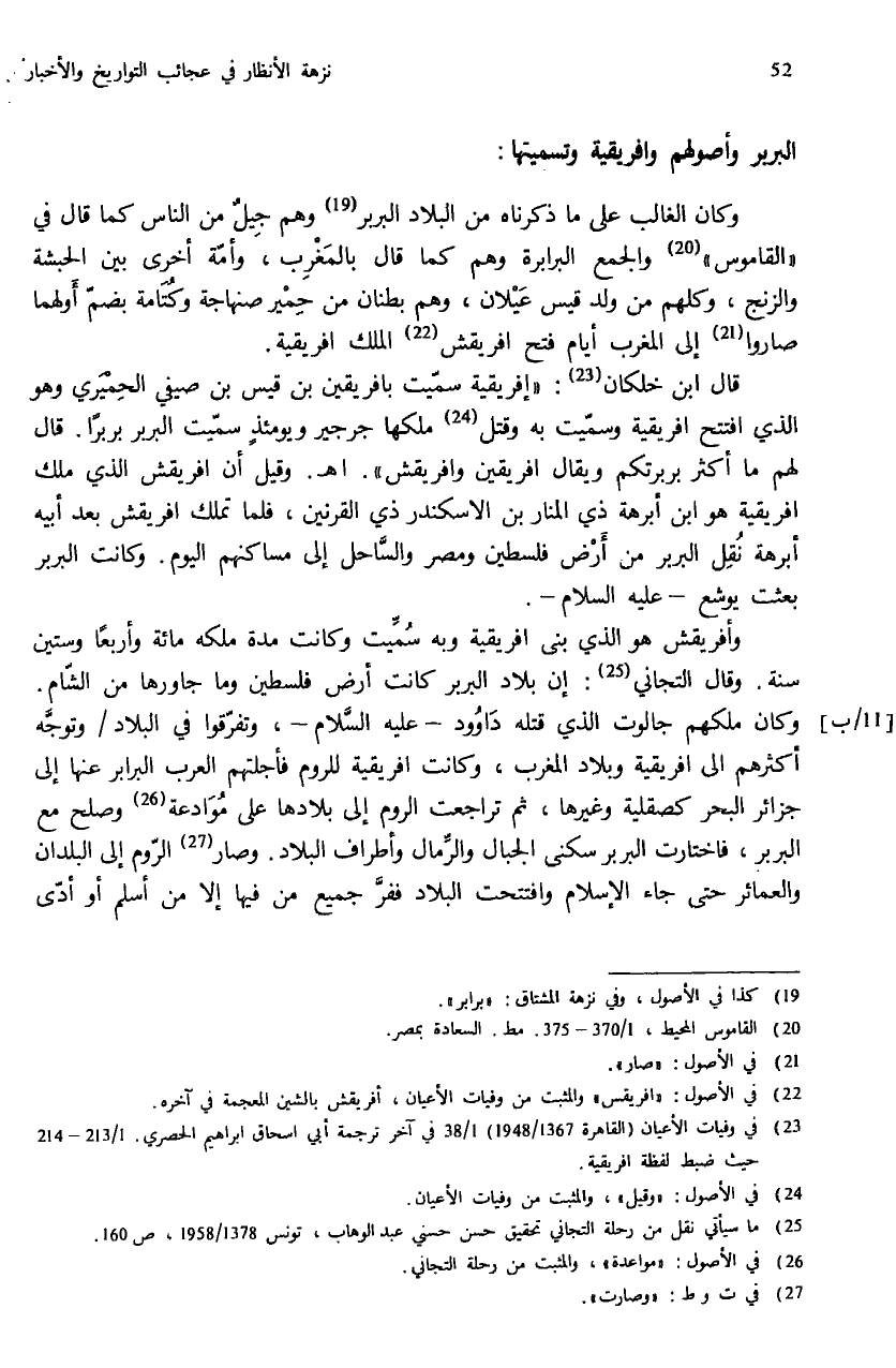 (¬23) في وفيات الأعيان (القاهرة 1367/ 1948) 1/ 38 في آخر ترجمة أبي اسحاق ابراهيم الحصري.1/ 213 - 214 حيث ضبط لفظة افريقية.