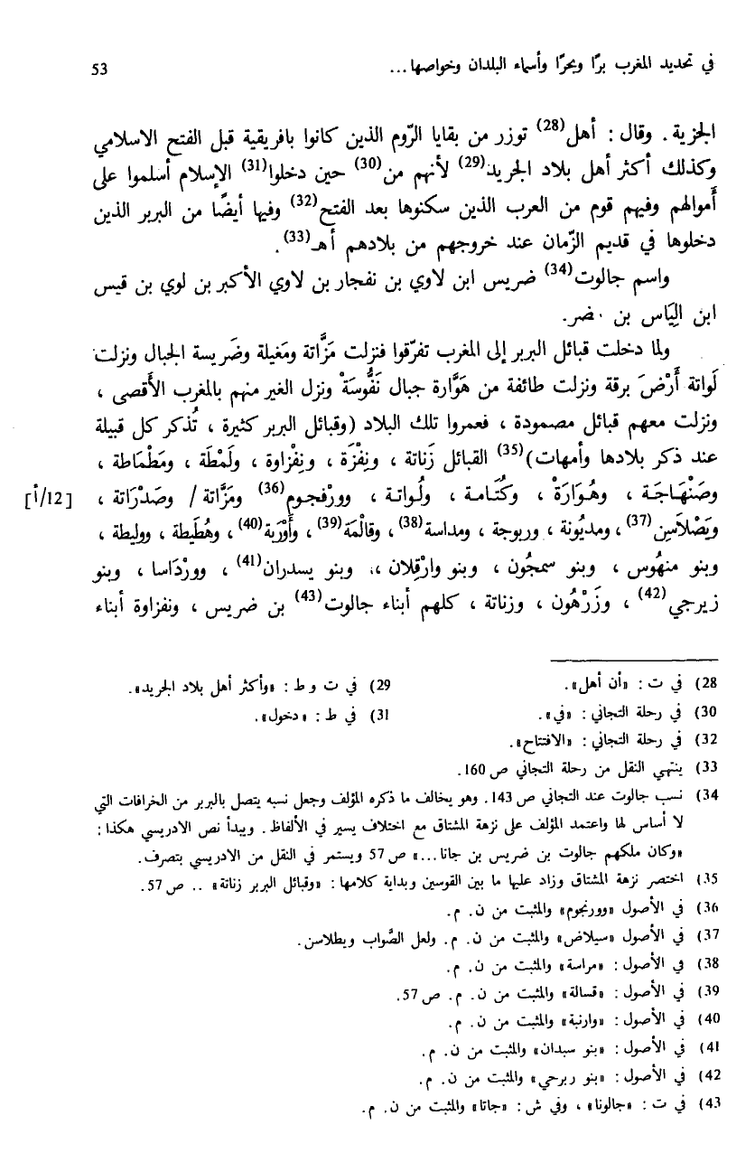 (¬35) اختصر نزهة المشتاق وزاد عليها ما بين القوسين وبداية كلامها: «وقبائل البربر زناتة». . . ص: 57.
