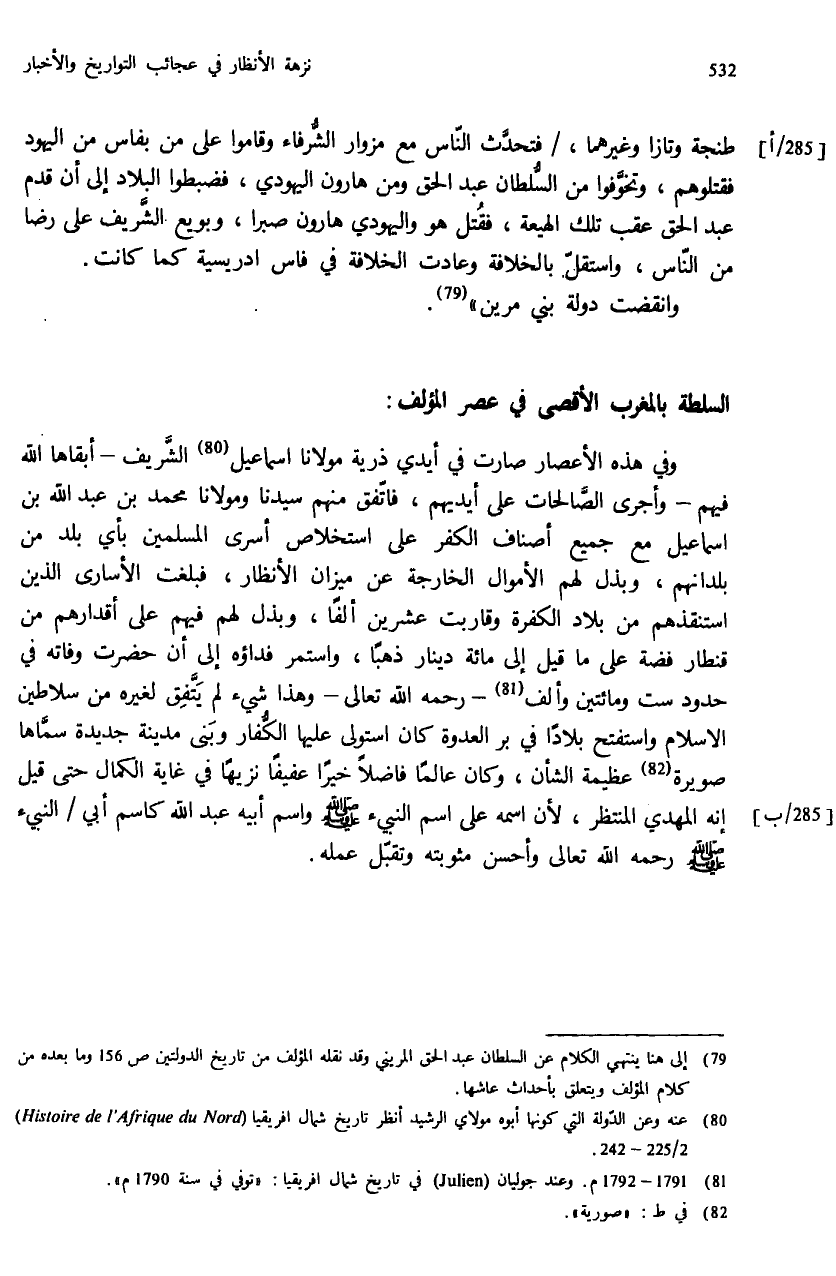 (¬80) عنه وعن الدّولة التي كونها أبوه مولاي الرشيد أنظر تاريخ شمال افريقيا 2/ 224 - 225 (Histoire de l' Afrique du Nord).