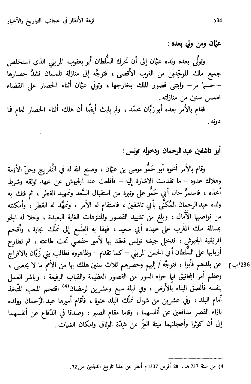 (¬4) من سنة 737 هـ ، 28 أفريل 1337 م أنظر عن هذا تاريخ الدولتين ص: 72.