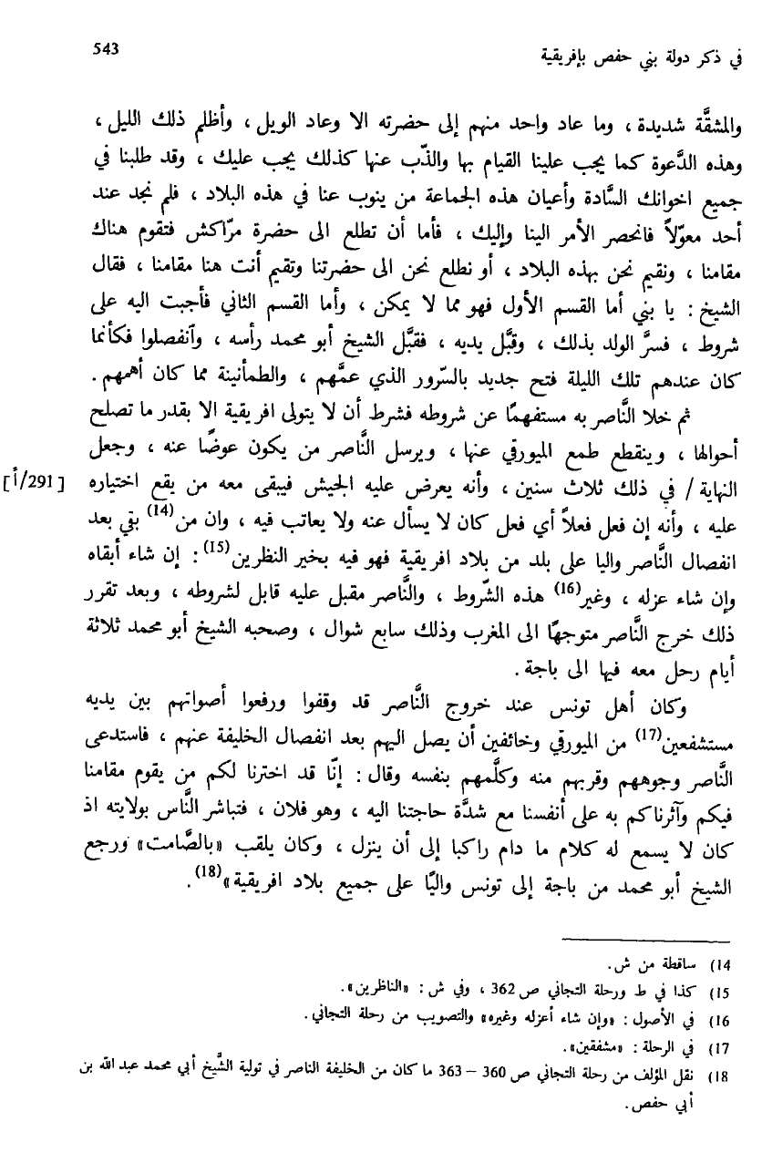 (¬18) نقل المؤلف من رحلة التجاني ص: 360 - 363 ما كان من الخليفة الناصر في تولية الشّيخ أبي محمد عبد الله بن أبي حفص.