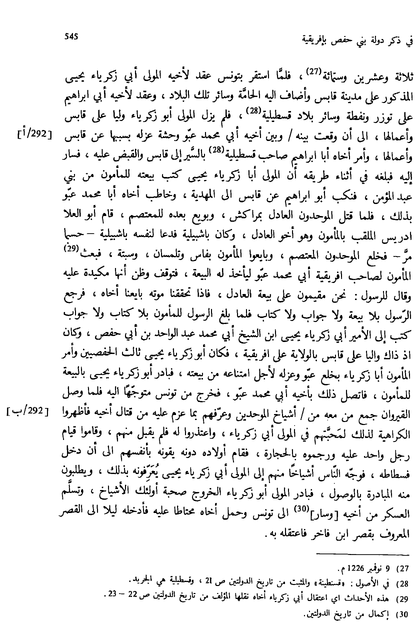 (¬29) هذه الأحداث اي اعتقال أبي زكرياء أخاه نقلها المؤلف من تاريخ الدولتين ص: 22 - 23.