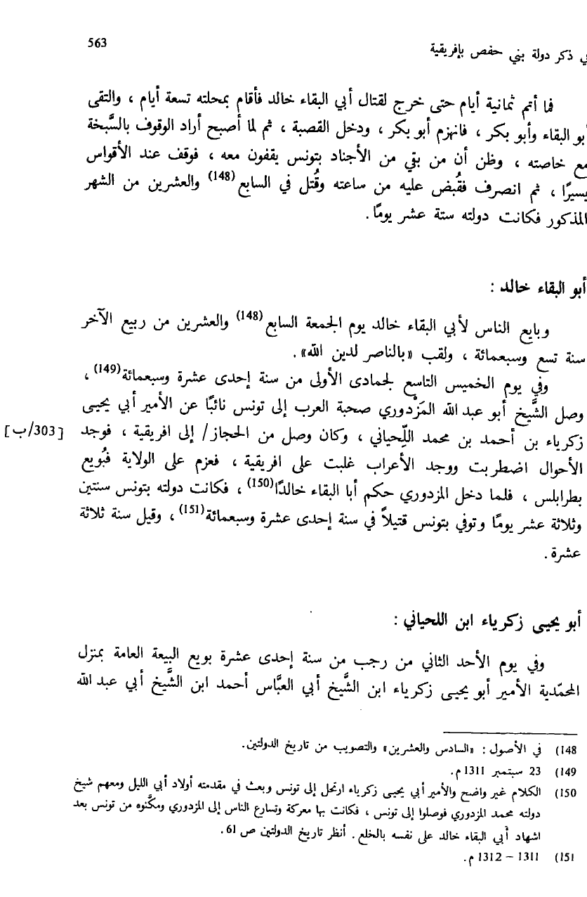 (¬150) الكلام غير واضح والأمير أبي يحيى زكرياء ارتحل إلى تونس وبعث في مقدمته أولاد أبي الليل ومعهم شيخ دولته محمد المزدوري فوصلوا إلى تونس، فكانت بها معركة وتسارع الناس إلى المزدوري ومكّنوه من تونس بعد اشهاد أبي البقاء خالد على نفسه بالخلع. أنظر تاريخ الدولتين ص: 61.