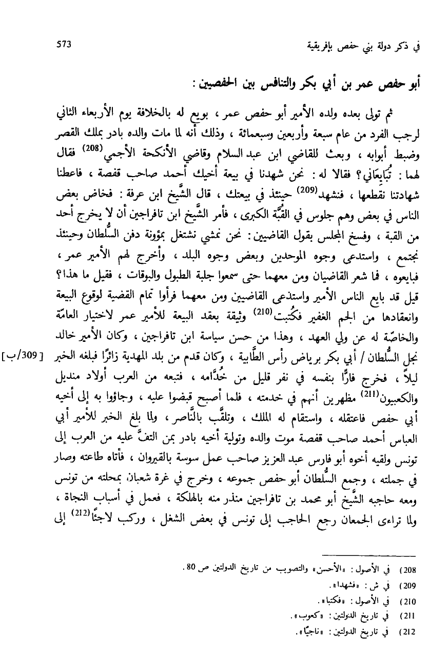 (¬208) في الأصول: «الأحسن» والتصويب من تاريخ الدولتين ص: 80.