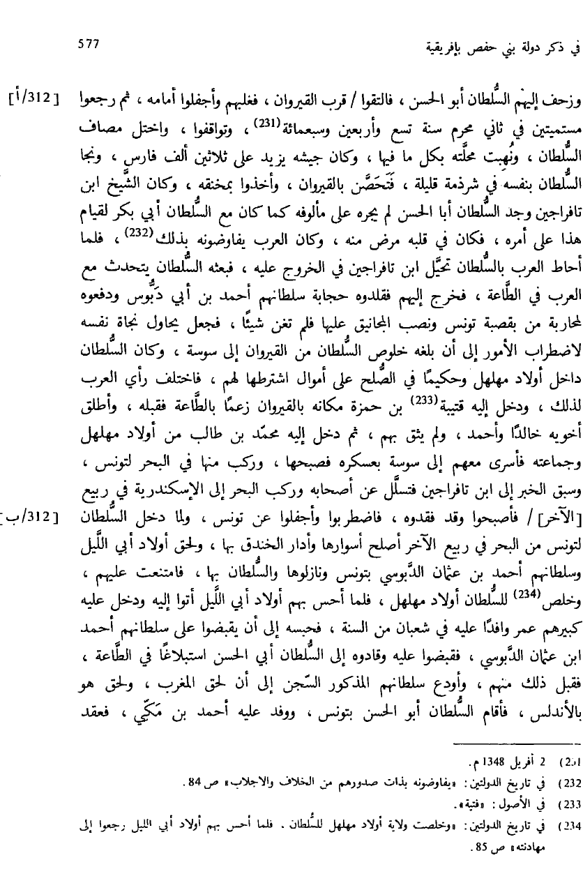 (¬232) في تاريخ الدولتين: «يفاوضونه بذات صدورهم من الخلاف والاجلاب» ص: 84.