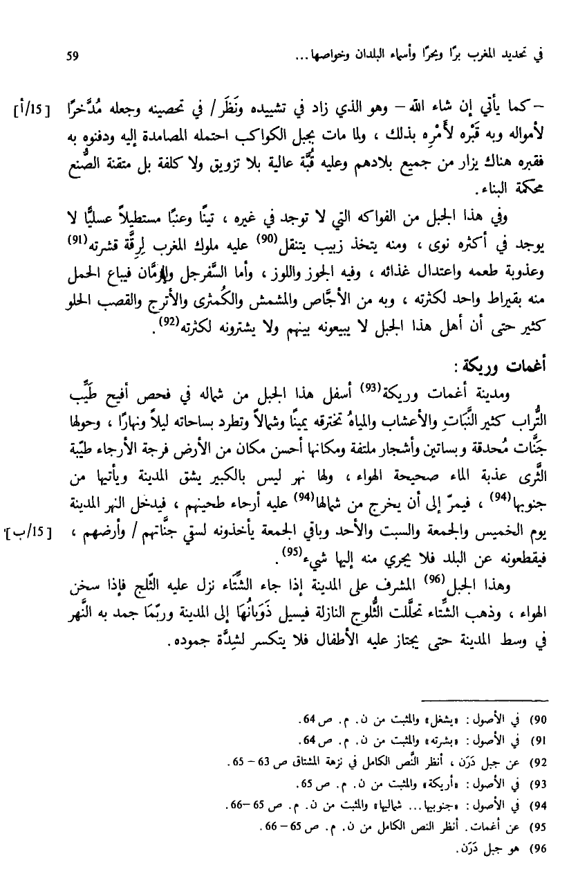 (¬92) عن جبل درن، أنظر النّص الكامل في نزهة المشتاق ص: 63 - 65.