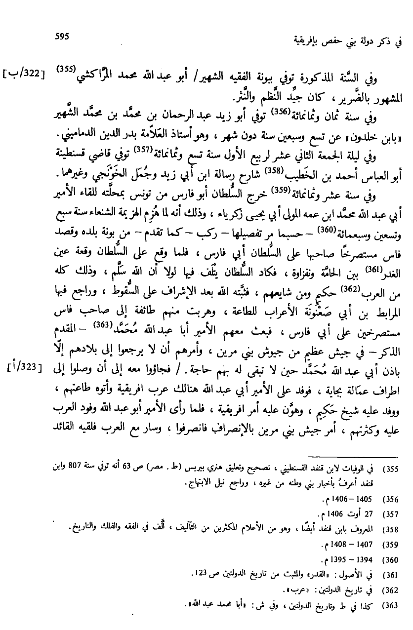(¬355) في الوفيات لابن قنفد القسنطيني، تصحيح وتعليق هنري بيريس (ط. مصر) ص: 63 أنه توفي سنة 807 وابن قنفد أعرف بأخبار بني وطنه من غيره، وراجع نيل الابتهاج.