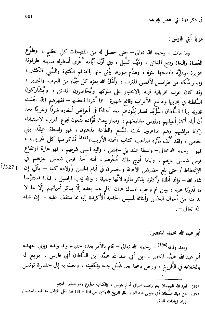 (¬394) عن دولة السّلطان أبي فارس عبد العزيز انظر تاريخ الدولتين ص: 114 - 131 فقد نقل المؤلف ما فيه باختصار وزاد زيادات قليلة.