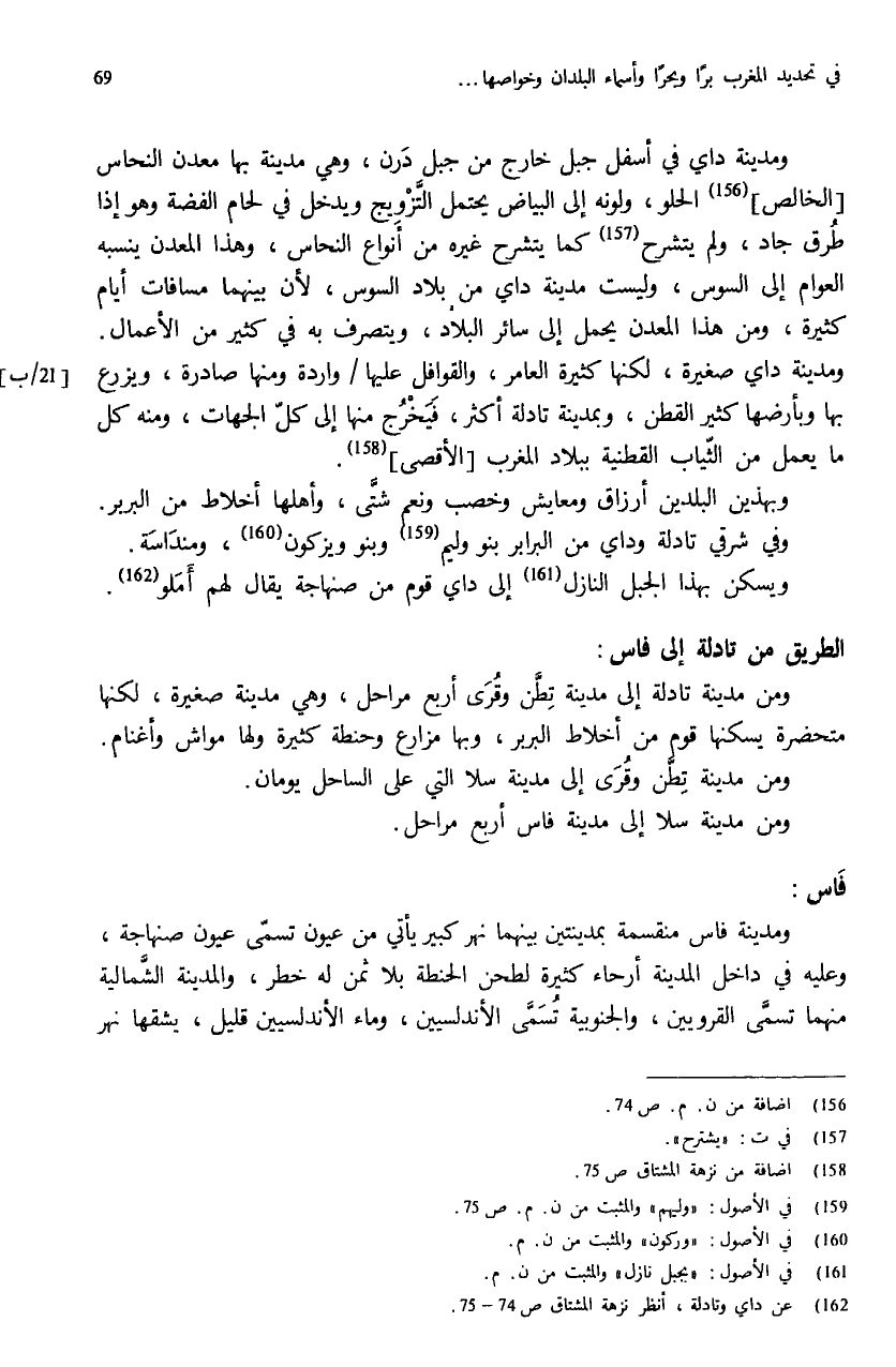 (¬162) عن داي وتادلة، أنظر نزهة المشتاق ص: 74 - 75.