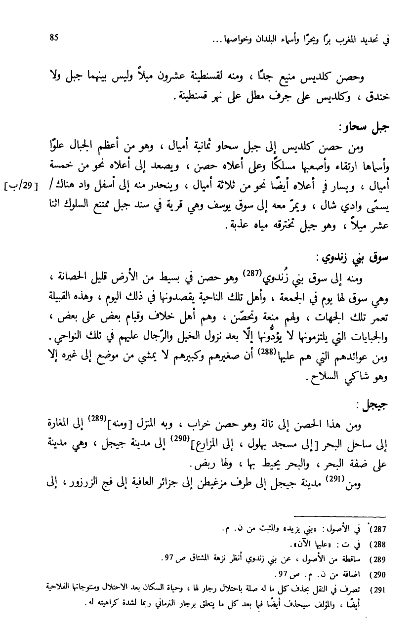 (¬289) ساقطة من الأصول، عن بني زندوي أنظر نزهة المشتاق ص: 97.