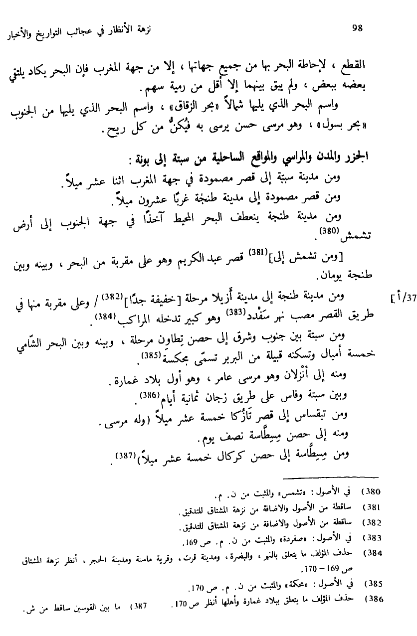 (¬386) حذف المؤلف ما يتعلق ببلاد غمارة وأهلها أنظر ص: 170.