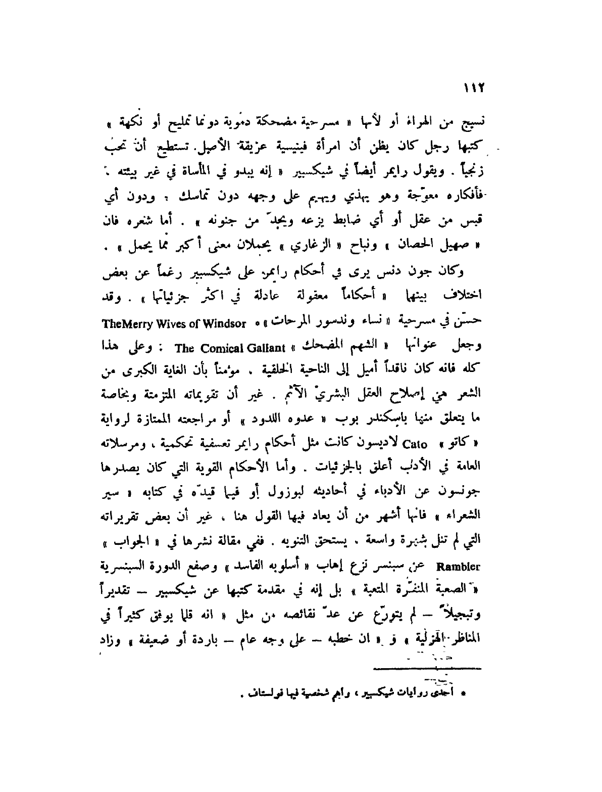 (1) إحدى روايات شكسبير، وأهم شخصية فيها فولستاف.