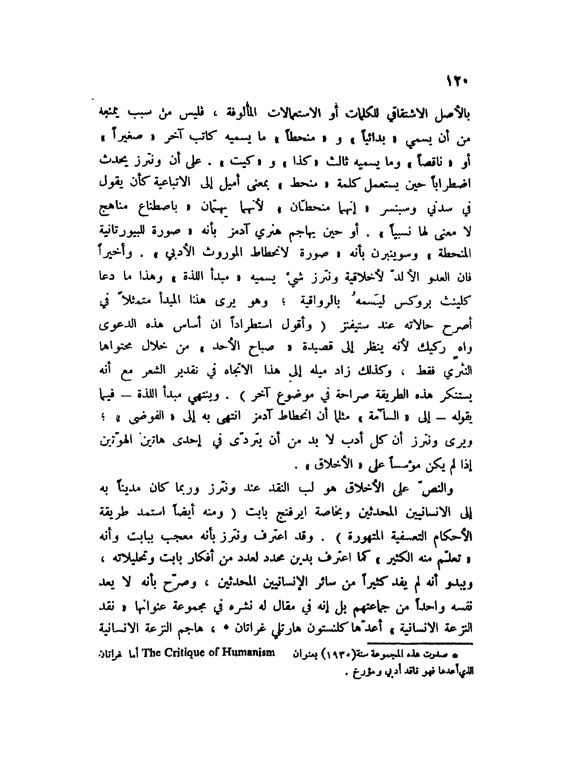 (1) صدرت هذه المجموعة سنة (1930) بعنوان The Critique of Humanism أما غراتان الذي أعدها فهو ناقد أدبي ومؤرخ.