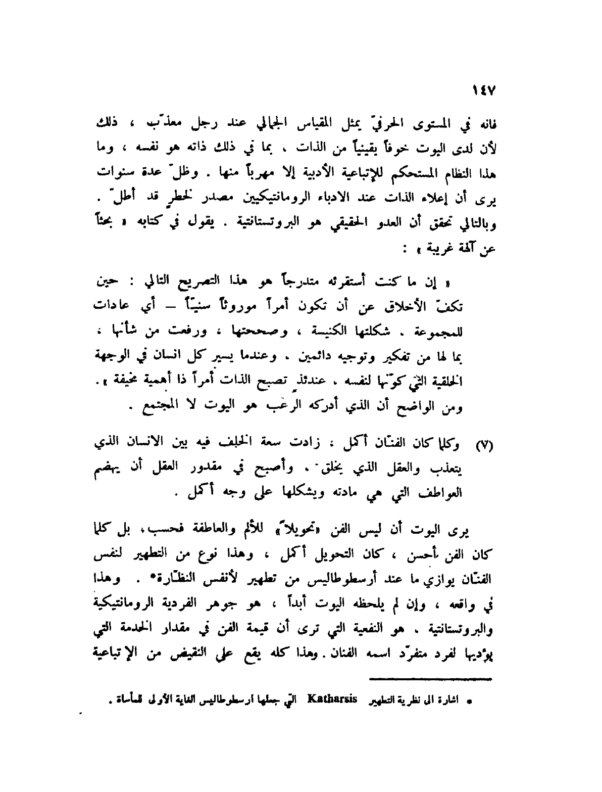 (1) إشارة إلى نظرية التطهير Katharsis التي جعلها أرسطوطاليس الغاية الأولى للمأساة.