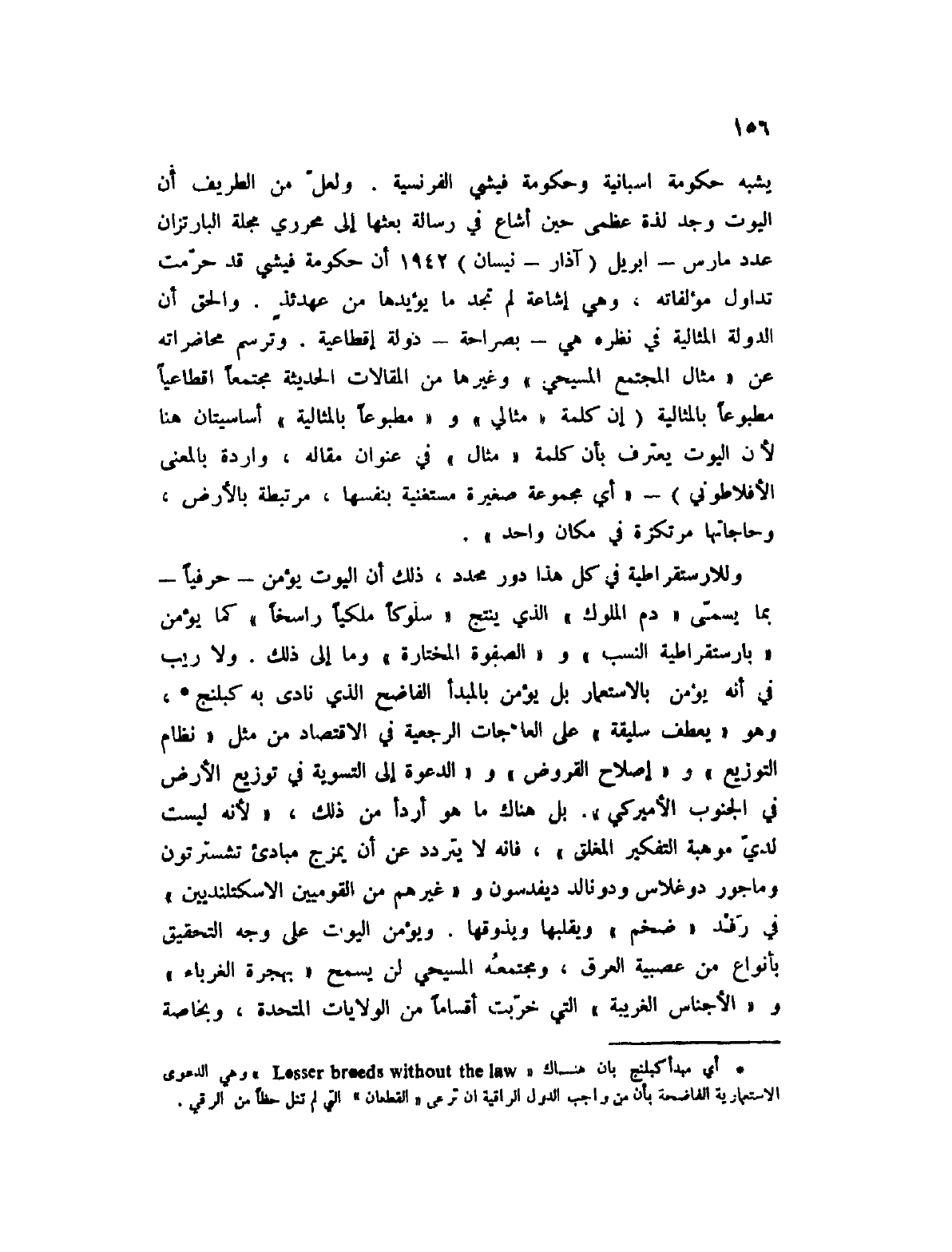 (1) أي مبدأ كبلنج بأن هناك " Losser Breeds without the law " وهي الدعوى الاستعمارية الفاضحة بأن من واجب الدول الراقية أن ترعى " القطعان " التي لم تنل حظاً من الرقي.