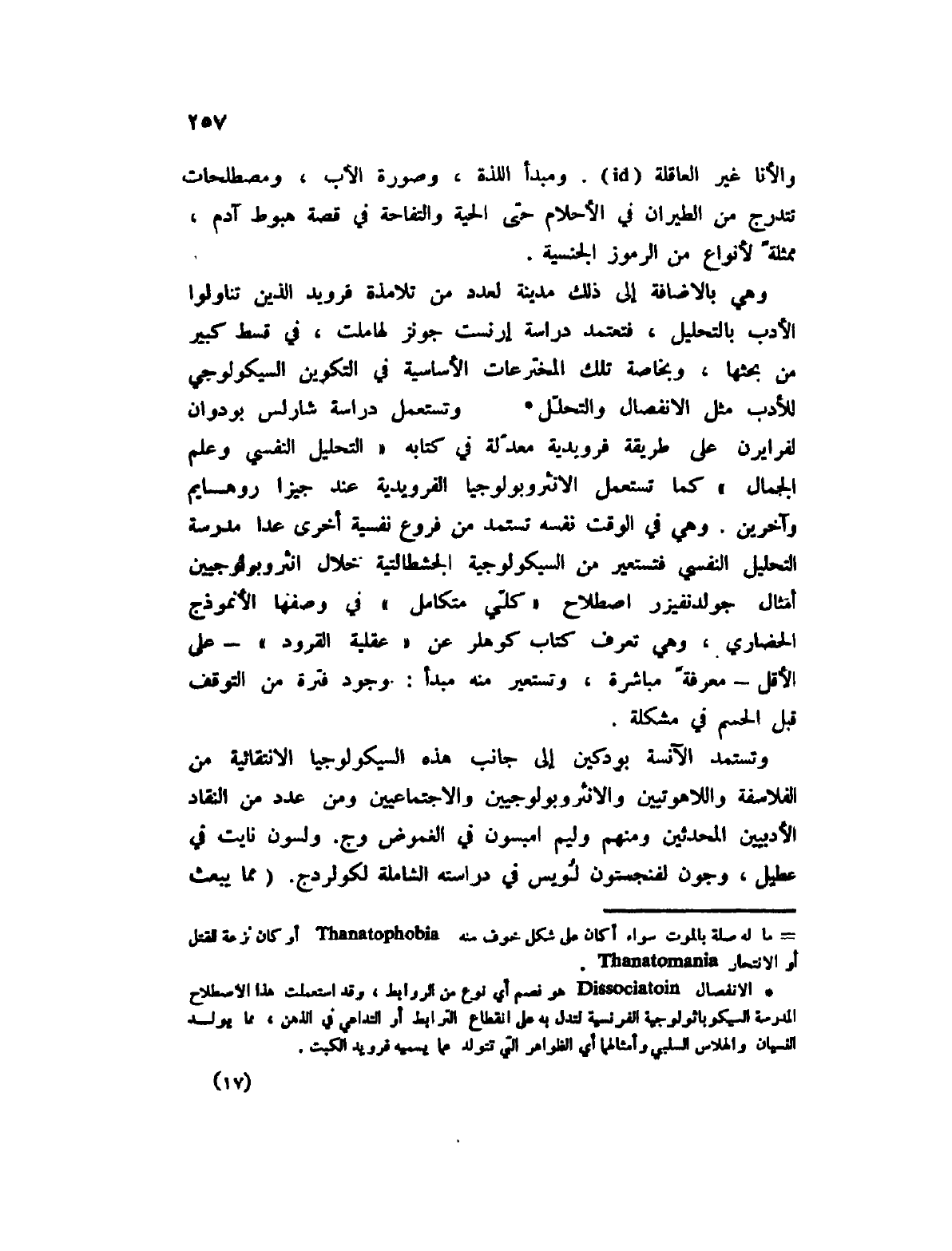 (1) الانفصال Dissociatoin هو فصم أي نوع من الروابط، وقد استعملت هذا الاصطلاح المدرسة السيكوباثولوجية الفرنسية لتدل به على انقطاع الترابط أو التداعي في الذهن، مما يولد النسيان والهلاس السلبي وأمثالهما أي الظواهر تتولد عما يسميه فرويد الكبت.