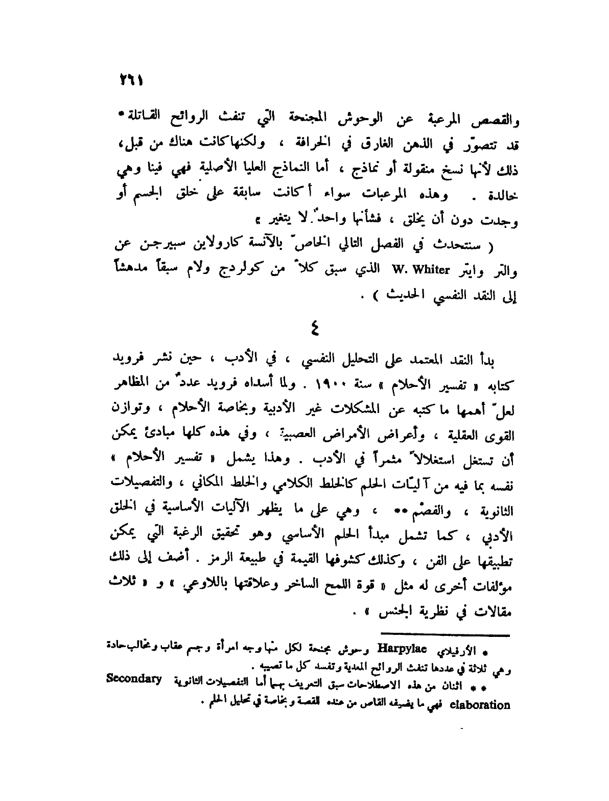 (2) اثنان من هذه الاصطلاحات سبق التعريف بهما أما التفصيلات الثانوية Secondary elaboration فهي ما يضيفه القاص من عنده للقصة وبخاصة في تحليل الحلم.