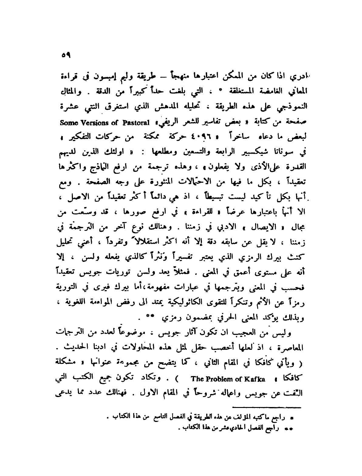 وليس من العجيب أن تكون آثار جويس، موضوعا من الترجمات المعاصرة، إذ لعلها أخصب حقل لمثل هذه المحاولات في أدبنا الحديث (ويأتي كافكا في المقام الثاني، كما يتضح من مجموعة عنوانها " مشكلة كافكا " The Problem of Kafka) وتكاد تكون جميع اكتب ألفت عن جويس وأعماله شروحا في المقام الأول. فهنالك عدد مما يدعى