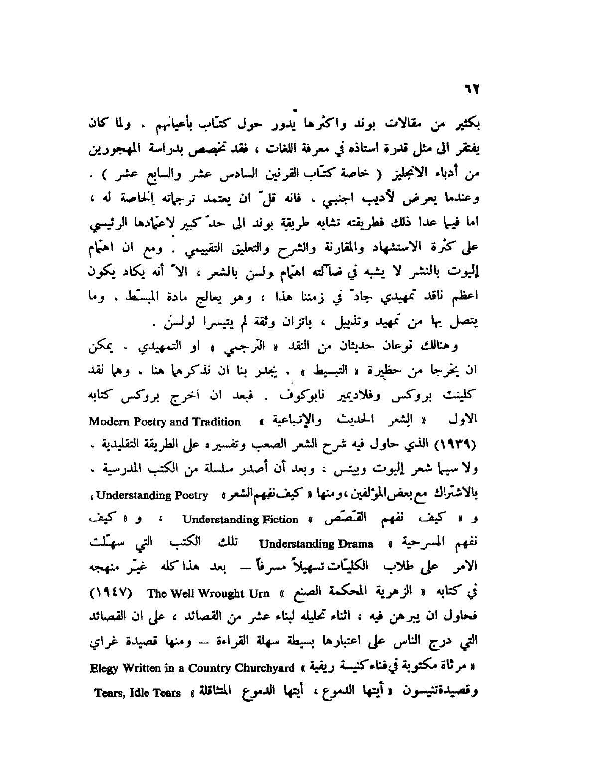 وهنالك نوعان حديثان من النقد " الترجمي " أو التمهيدي، يمكن أن يخرجا من حظيرة " التبسيط "، يجدر بنا أن نذكرهما هنا، وهما نقد كلينث بروكس وفلاديمير نابكوف. فبعد أن أخرج بروكس كتابه الأول " الشعر الحديث والاتباعية " Modern poetry and Tradition (1939) الذي حاول فيه شرح الصعب وتفسيره على الطريقه التقليدية، ولاسيما شعر إليوت وييتص، وبعد أن أصدر سلسلة من الكتب المدرسية، بالاشتراك مع بعض المؤلفين، ومنها " كيف نفهم الشعر " Understanding poetry، و " كيف نفهم القصص " Understanding Fiction، و " كيف نفهم المسرحية " Understanding Drama، تلك الكتب التي سهلت الأمر على طلاب الكليات تسهيلا مسرفا؟ بعد هذا كله غير منهجه في كتابه " الزهرية المحكمة الصنع " The Well Wrought Urn (1947) فحول أن يبرهن فيه، أثناء تحليله لبناء عشر من القصائد، على أن القصائد التي درج الناس على اعتبارها بسيطة سهلة القراءة؟ ومنها قصيدة غراي " مرثاة مكتوبة في فناء كنيسة ريفية " Elegy Written in a Country Churchyard وقصيدة تنيسون " أيتها الدموع، أيتها الدموع المتثاقلة " Tears، Idle Tears
