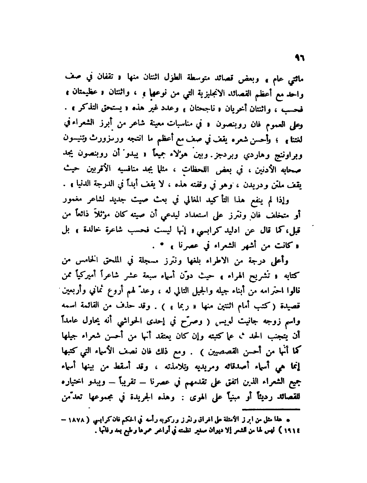 (1) هذا مثل من أبرز الأمثلة على إغراق ونترز وركوبه رأسه في الحكم فإن كرابسي (1878 - 1914) ليس لها من الشعر إلا ديوان صغير نظمته في أواخر عمرها وطبع بعد وفاتها.