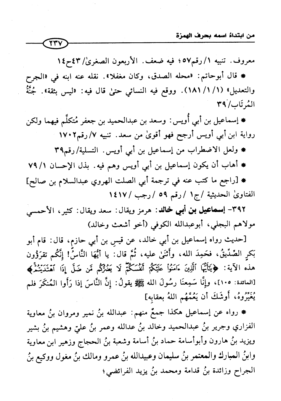 392 - إسماعيل بن أبي خالد: هرمز ويقال: سعد ويقال: كثير، الأحمسي مولاهم البجلي، أبو عبد الله الكوفي (أخو أشعث وخالد)
