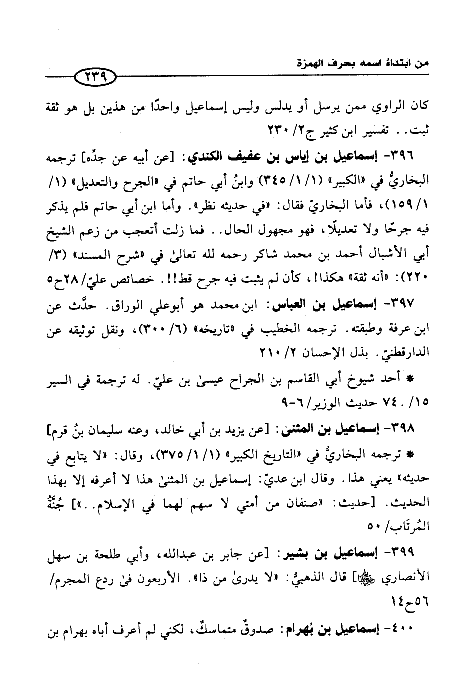 400 - إسماعيل بن بُهرام: صدوقٌ متماسكٌ، لكني لم أعرف أباه بهرام بن
