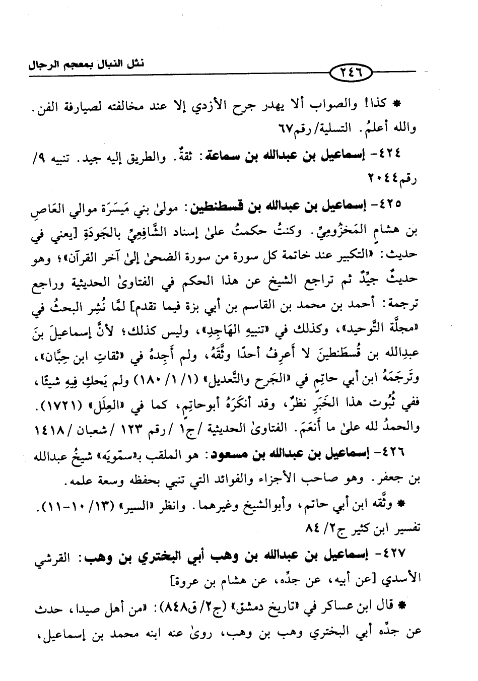 426 - إسماعيل بن عبد الله بن مسعود: هو الملقب بـ (سمّويَه (شيخُ عبد الله بن جعفر. وهو صاحب الأجزاء والفوائد التي تنبي بحفظه وسعة علمه.