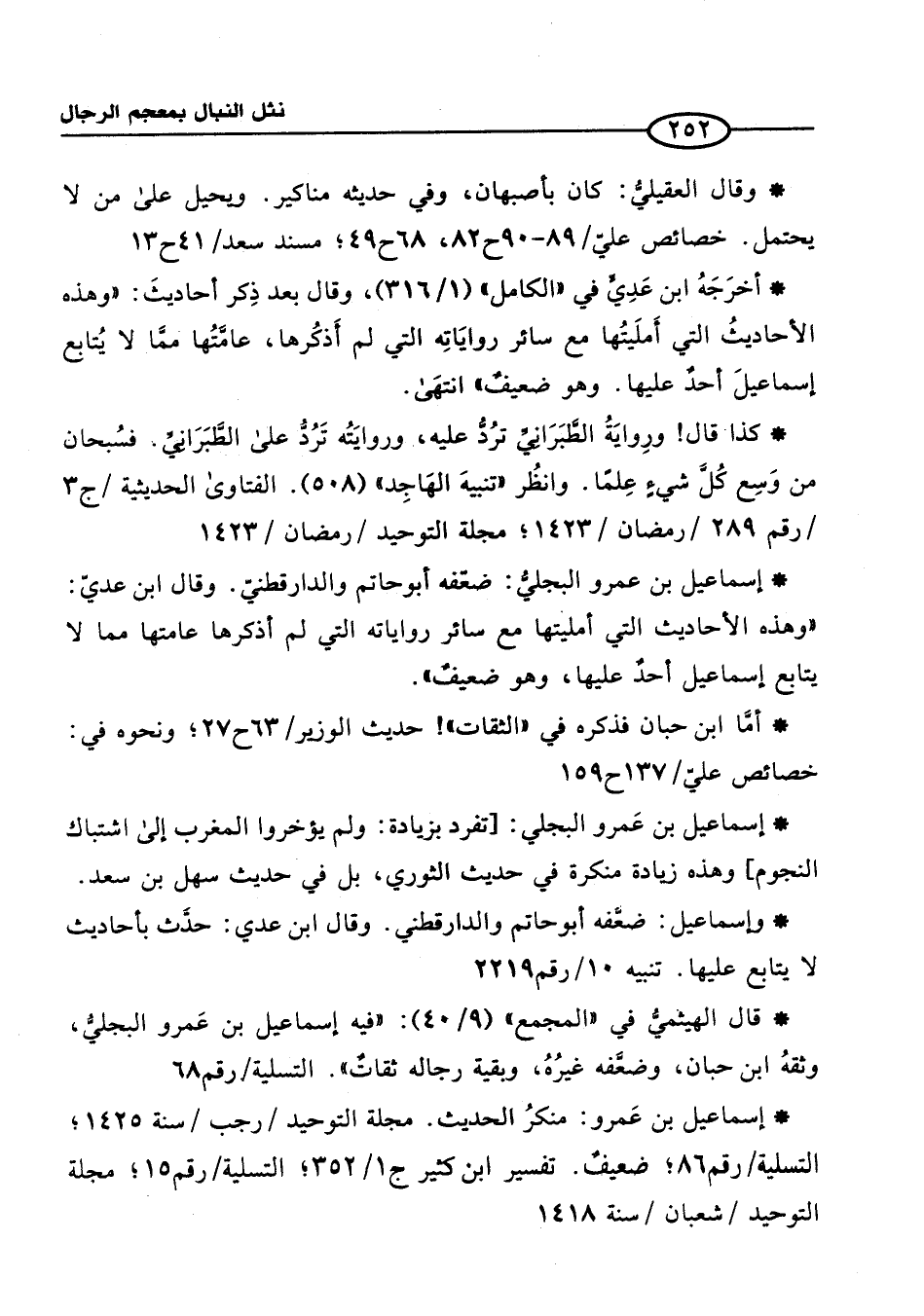 *وإسماعيل بن عَمرو: منكرُ الحديث. مجلة التوحيد / رجب/ سنة 1425؛ التسلية/ رقم 86؛ ضعيفٌ. تفسير ابن كثير ج 1/ 352؛ التسلية/ رقم 15؛ مجلة التوحيد/ شعبان/ سنة 1418
