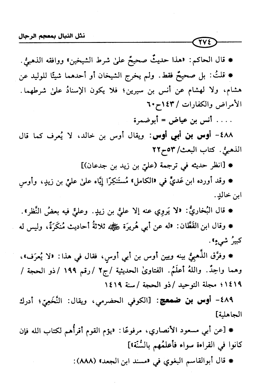 488 - أوس بن أبي أوس: ويقال أوس بن خالد، لا يُعرف كما قال الذهبيُّ. كتاب البعث / 53ح 22