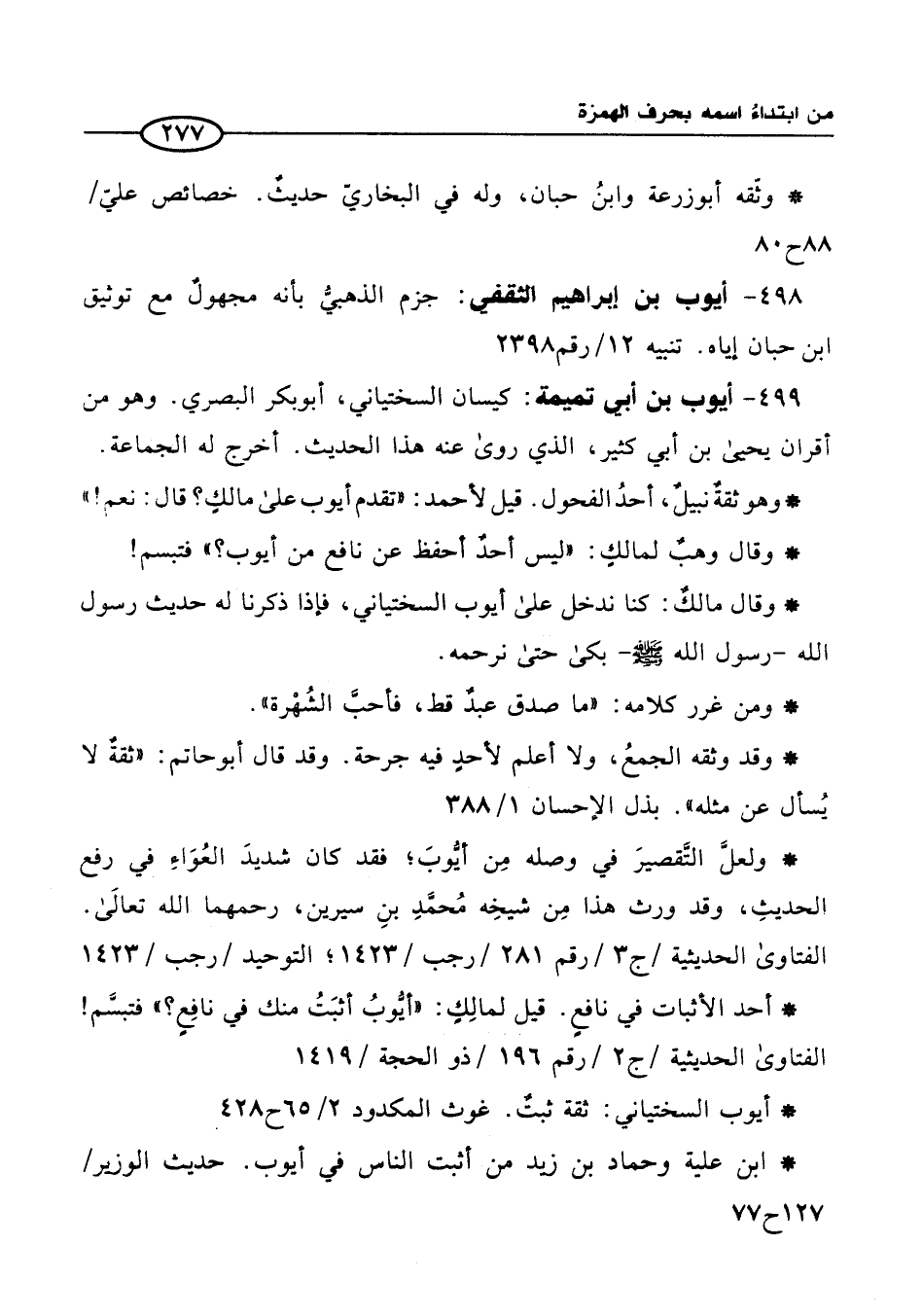 * أيوب السختياني: ثقة ثبتٌ. غوث المكدود 2/ 65ح 428