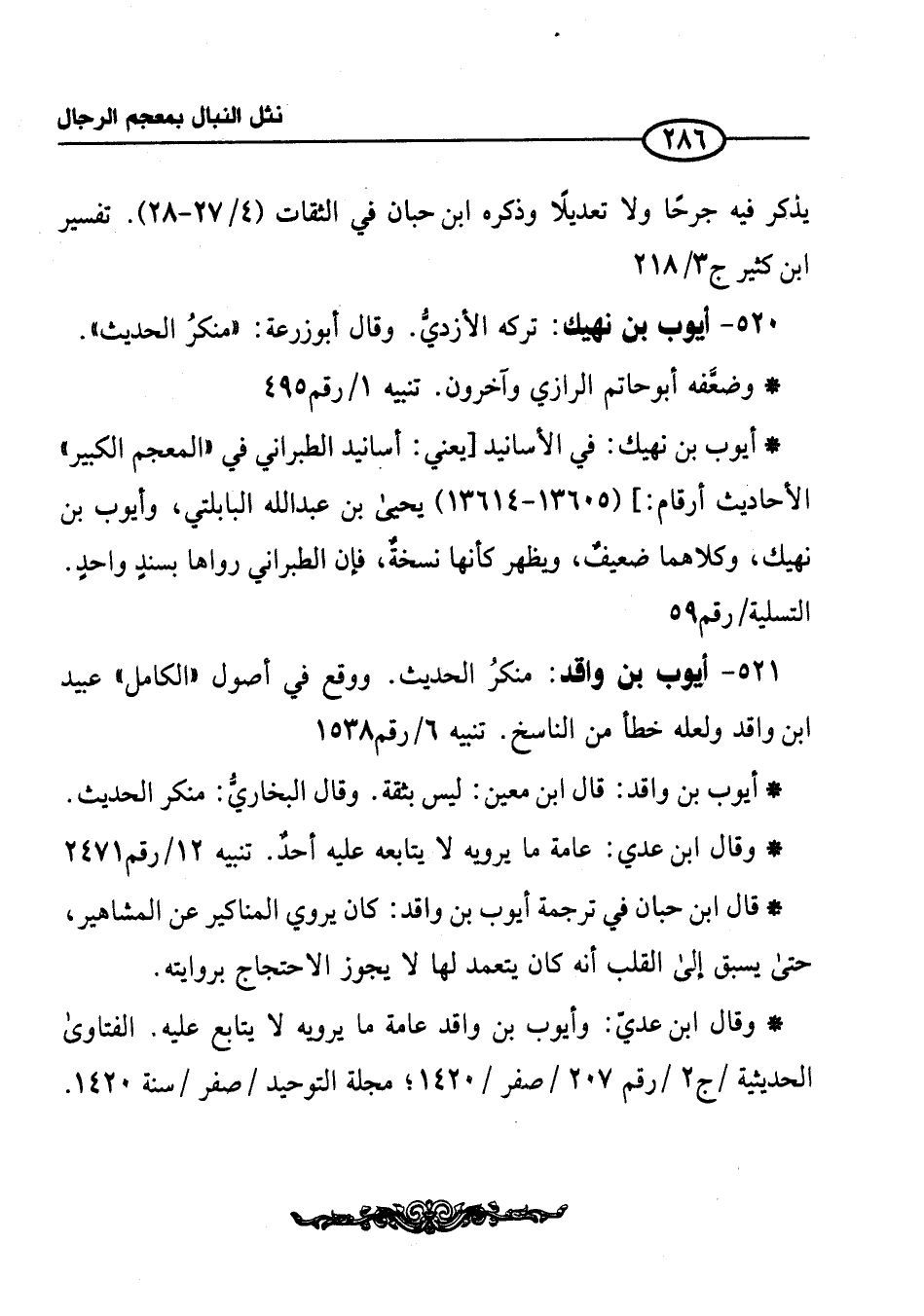 520 - أيوب بن نهيك: تركه الأزديُّ. وقال أبو زرعة: "منكرُ الحديث".