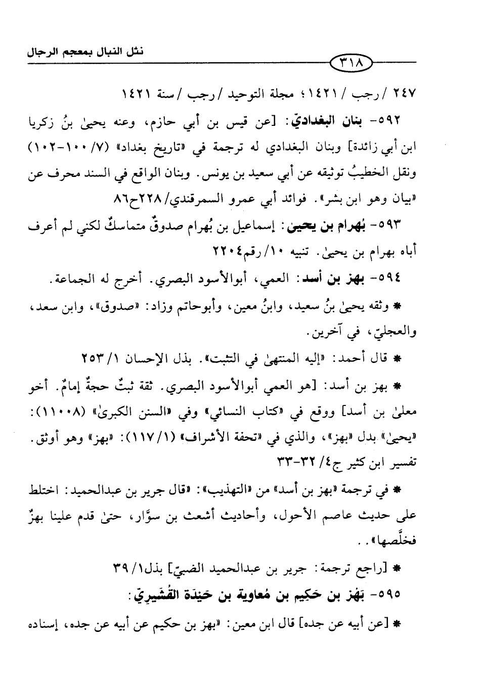 594 - بهز بن أسد: العمي، أبو الأسود البصري. أخرج له الجماعة.