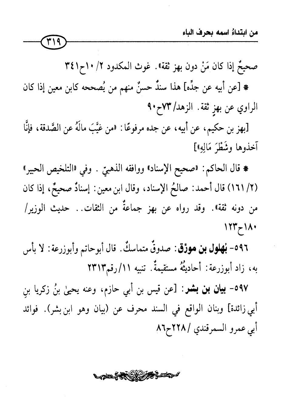 596 - بُهلول بن مورَّق: صدوقٌ متماسكٌ. قال أبو حاتم وأبو زرعة: لا بأس به، زاد أبو زرعة: أحاديثُهُ مستقيمةٌ. تنبيه 11/ رقم 2313