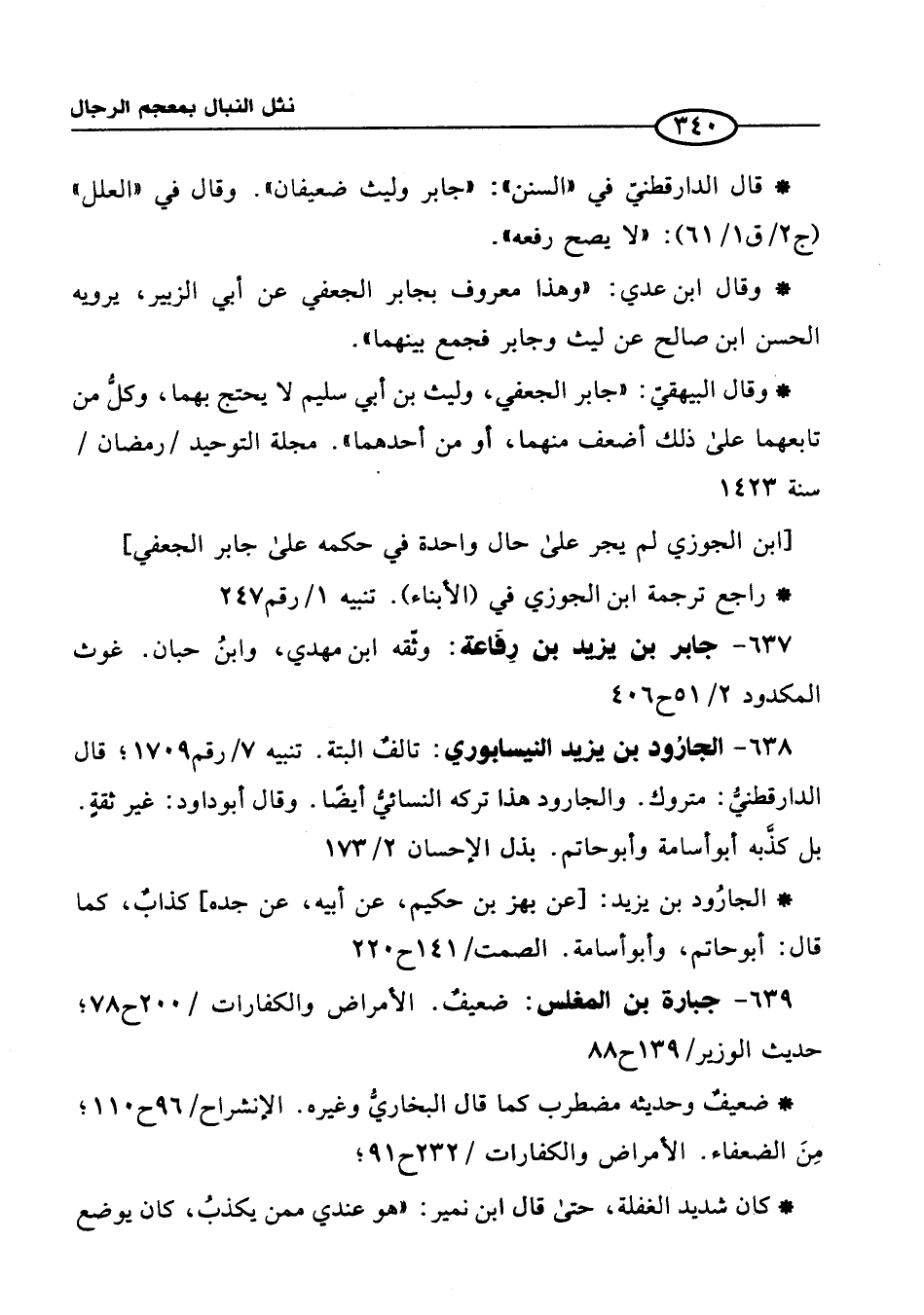 637 - جابر بن يزيد بن رِفَاعة: وثّقه ابن مهدي، وابنُ حبان. غوث المكدود 2/ 51ح406