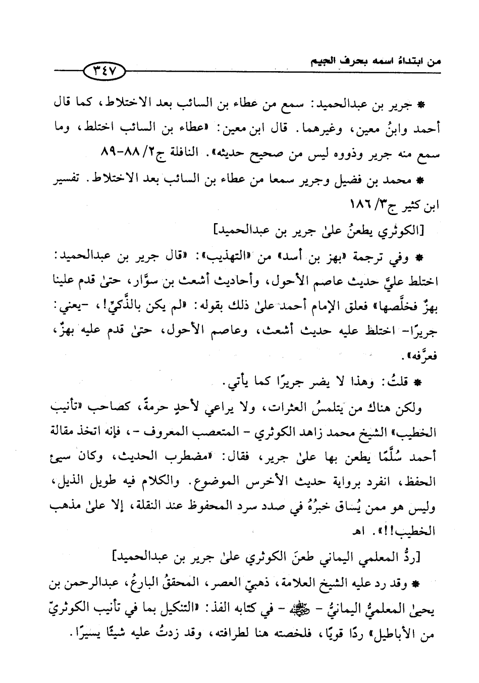 [ردُّ المعلمي اليماني طعنَ الكوثري على جرير بن عبد الحميد]