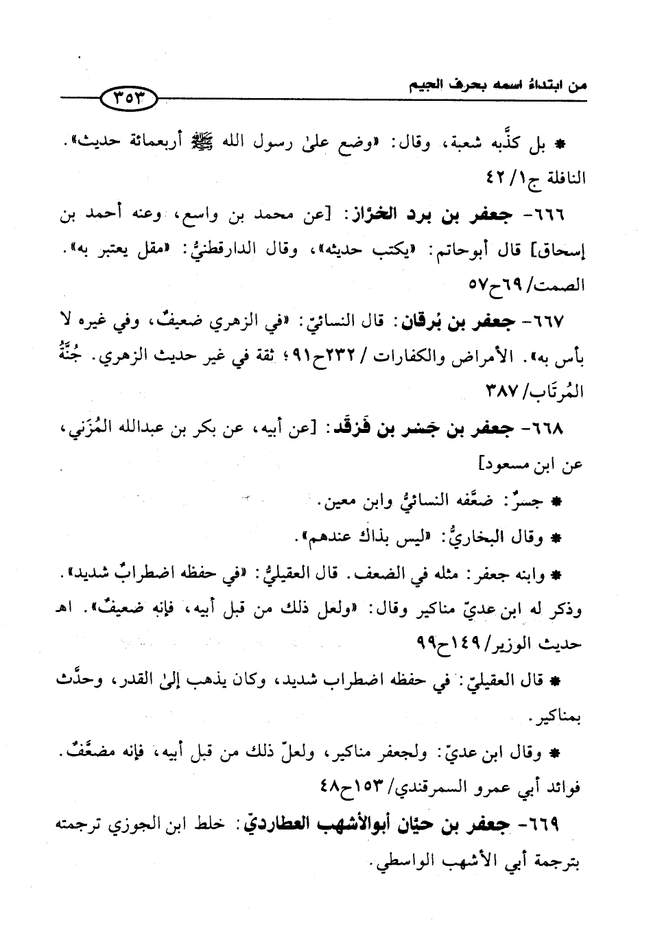 669 - جعفر بن حيَّان أبو الأشهب العطارديّ: خلط ابن الجوزي ترجمته بترجمة أبي الأشهب الواسطي.