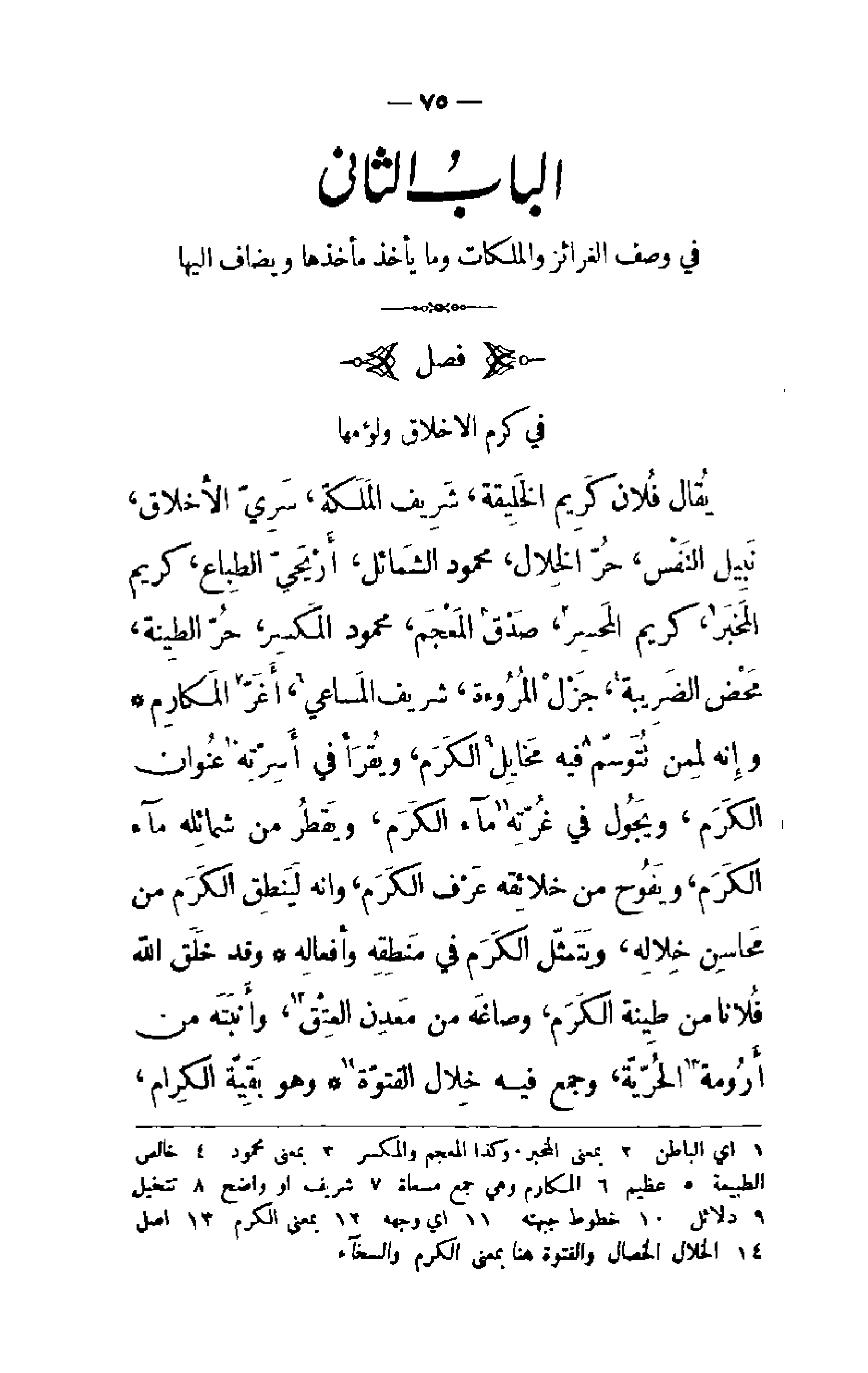 الباب الثاني: في وصف الغرائز والملكات وما يأخذ مأخذها ويضاف إليها