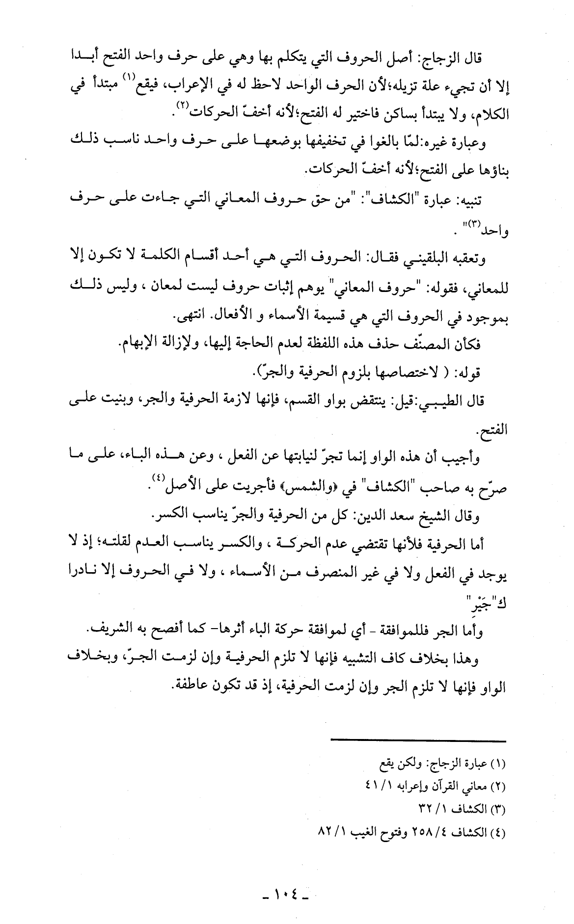 تنبيه: عبارة " الكشاف ": " من حق حروف المعاني التي جاءت على حرف واحد (3) ".
