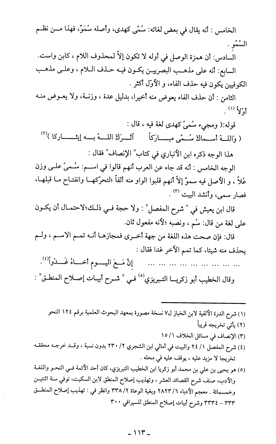 وقال الخطيب أبو زكريا التبريزي (5) في " شرح أبيات إصلاح المنطق ":