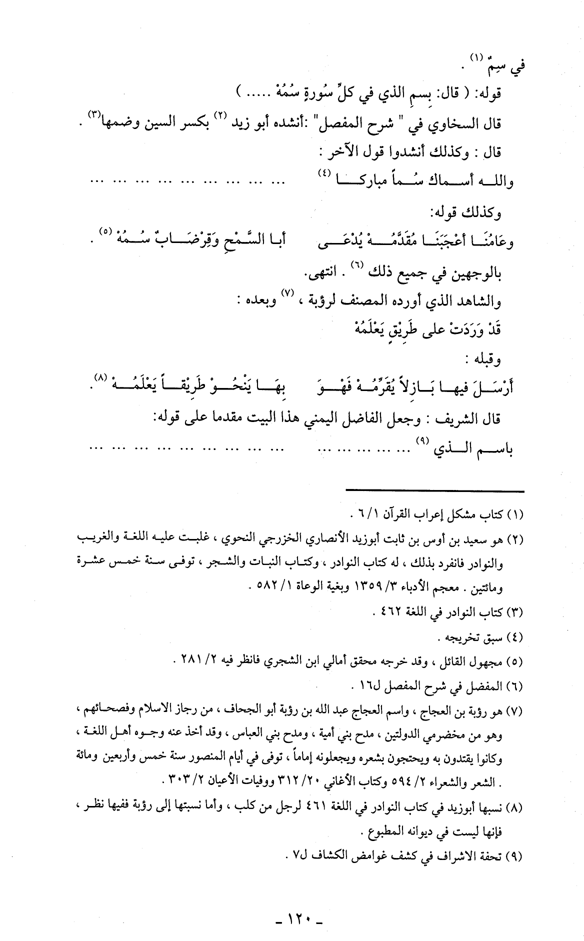 (8) نسبها أبو زيد في كتاب النوادر في اللغة 461 لرجل من كلب، وأما نسبتها إلى رؤبة فقيها نظر، فإنها ليست في ديوانه المطبوع.