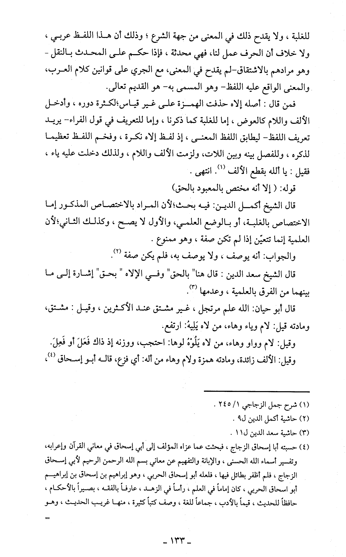 قال الشيخ سعد الدين: قال هنا " بالحق " وفي الإلاه " بحق " إشارة إلى ما بينهما من الفرق بالعلمية، وعدمها (3).