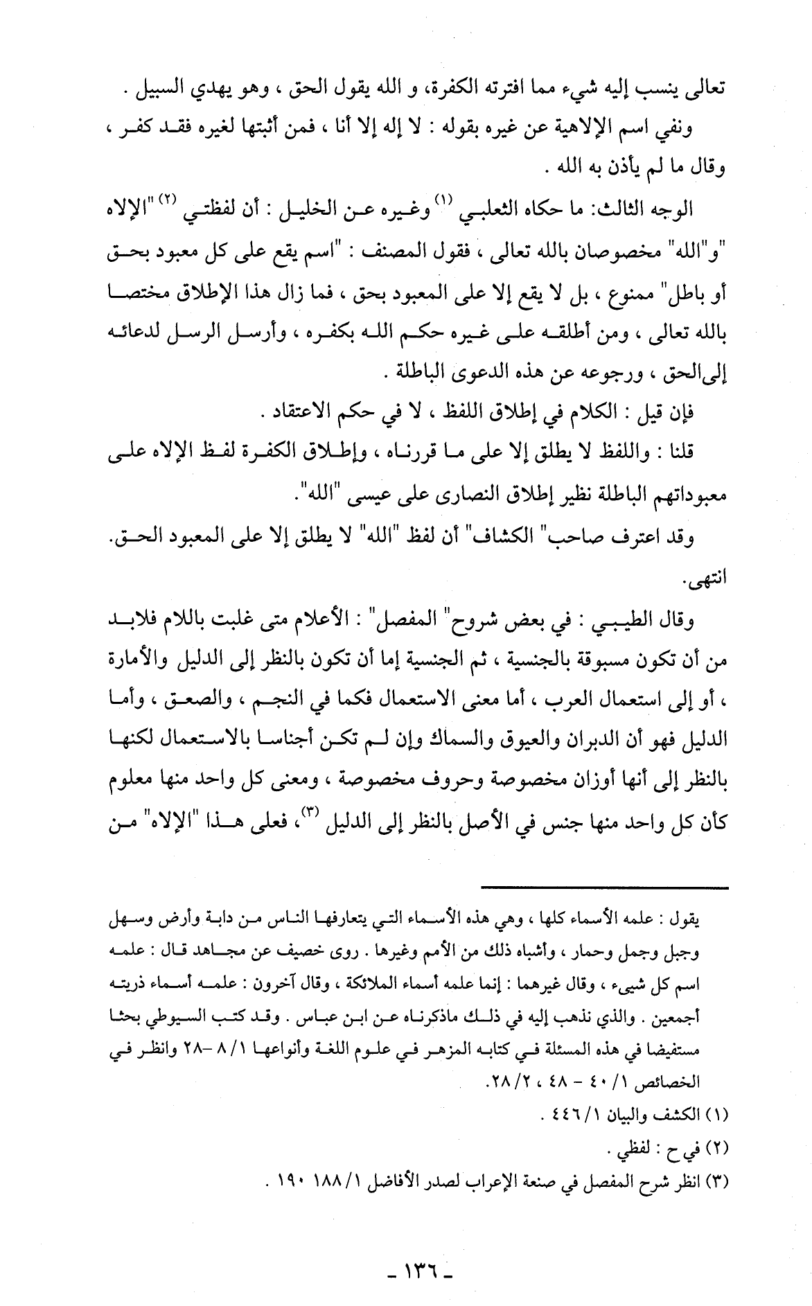 قلنا: واللفظ لا يطلق إلا على ما قررناه، وإطلاق الكفرة لفظ الإلاه على معبوداتهم الباطلة نظير إطلاق النصارى على عيسى " الله ".