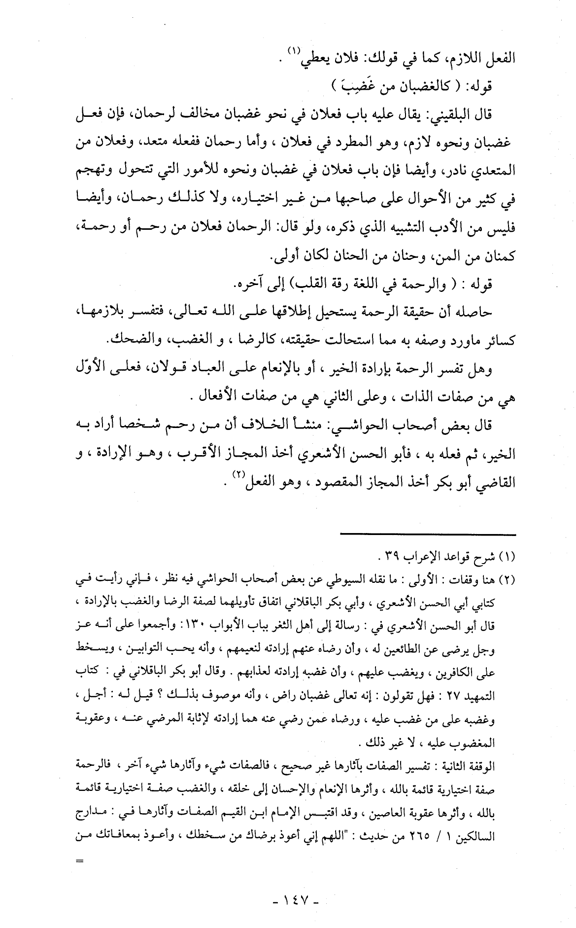قال بعض أصحاب الحواشي: منشأ الخلاف أن من رحم شخصا أراد به الخير، ثم فعله به، فأبو الحسن الأشعري أخذ المجاز الأقرب، وهو الإرادة، والقاضي أبو بكر أخذ المجاز المقصود، وهو الفعل (2).