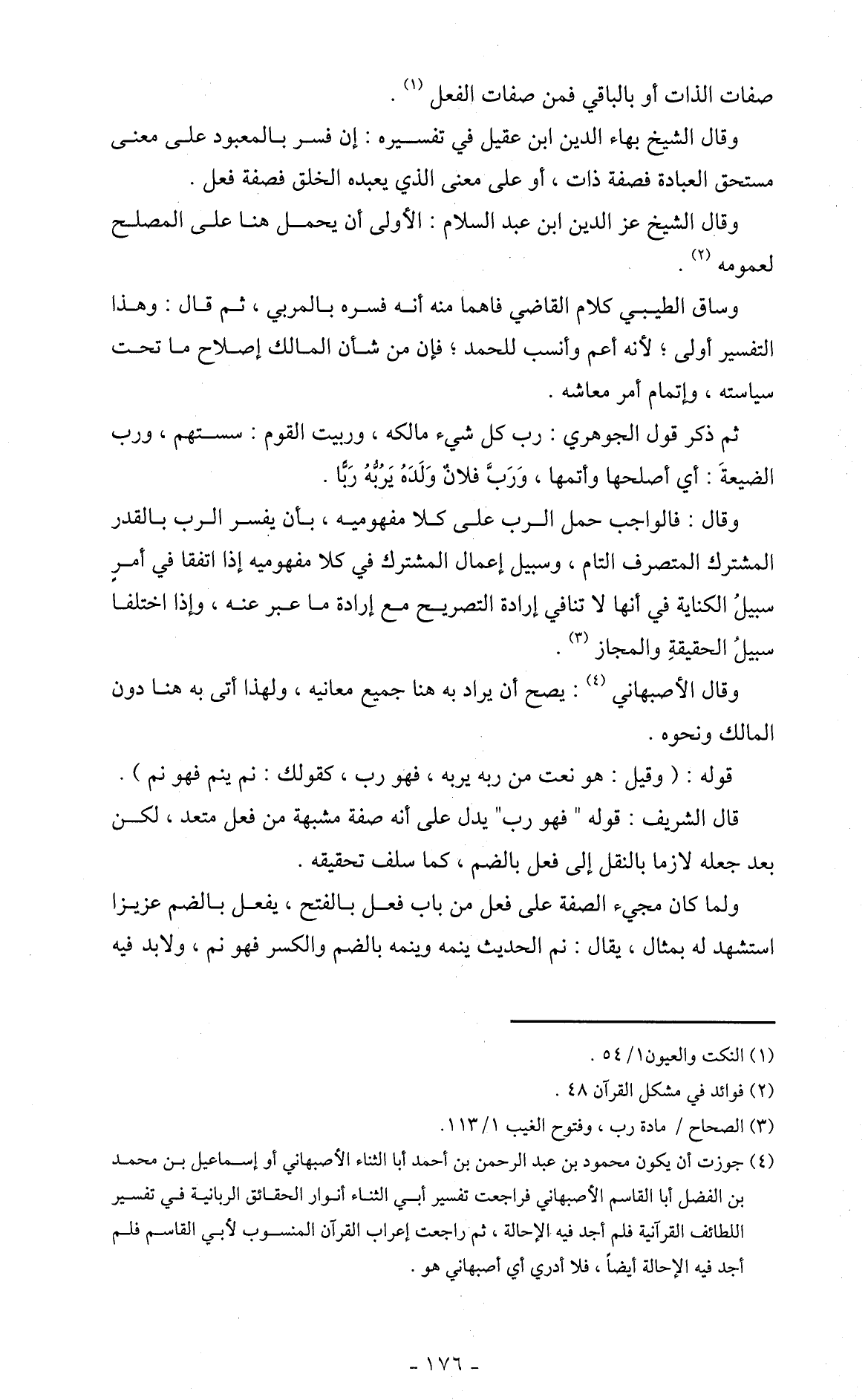 وقال: فالواجب حمل الرب على كلا مفهوميه، بأن يفسر الرب بالقدر المشترك المتصرف التام، وسبيل إعمال المشترك في كلا مفهوميه إذا اتفقا في أمرٍ سبيلُ الكناية في أنها لا تنافي إرادة التصريح مع إرادة ما عبر عنه، وإذا اختلفا سبيلُ الحقيقةِ والمجاز (3).