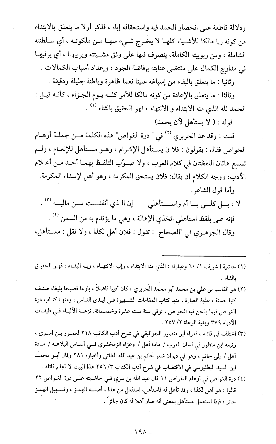 قلت: وقد عد الحريري (2) في " درة الغواص " هذه الكلمة من جملة أوهام الخواص فقال: يقولون: فلان يستأهل الإكرام، وهو مستأهل للإنعام، ولم تسمع هاتان اللفظتان في كلام العرب، ولا صوّب التلفظ بهما أحد من أعلام الأدب، ووجه الكلام أن يقال: فلان يستحق المكرمة، وهو أهل لإسداء المكرمة.