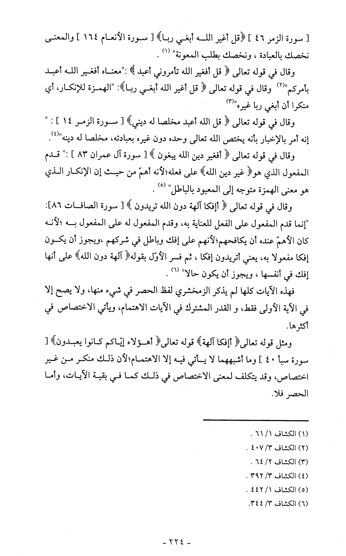 فهذه الآيات كلها لم يذكر الزمخشري لفظ الحصر في شيء منها، ولا يصح إلا في الآية الأولى فقط، والقدر المشترك في الآيات الاهتمام، ويأتي الاختصاص في أكثرها.