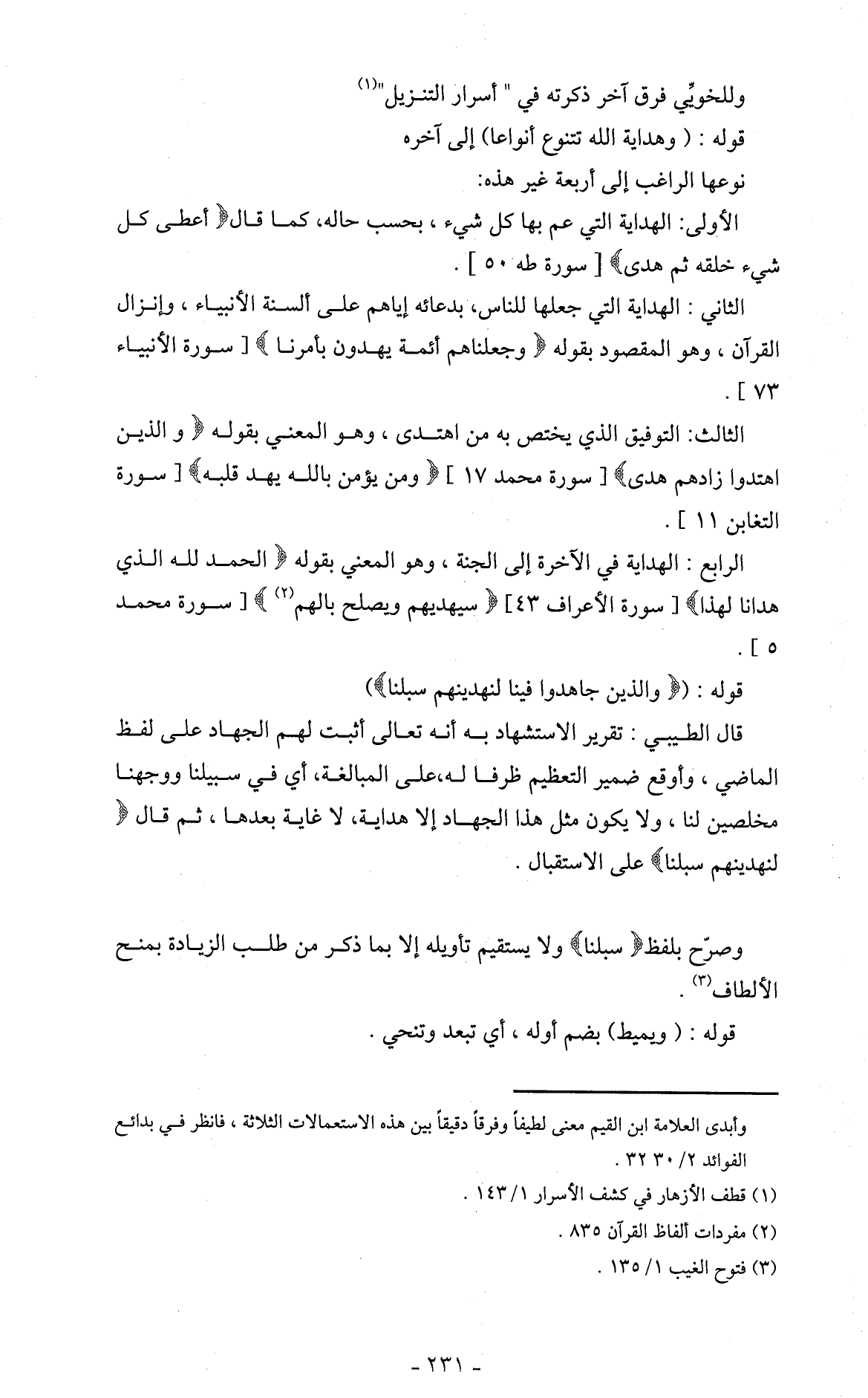 وصرّح بلفظ (سبلنا) ولا يستقيم تأويله إلا بما ذكر من طلب الزيادة بمنح الألطاف (3).